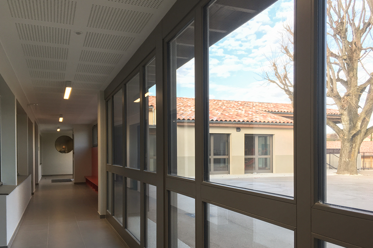 Programme : Démolition d’un bâtiment préfabriqué pour y construire une extension comprenant une salle de classe, une salle de motricité, une salle périscolaire accompagnée d’un préau et d’une grande cour aménagée.